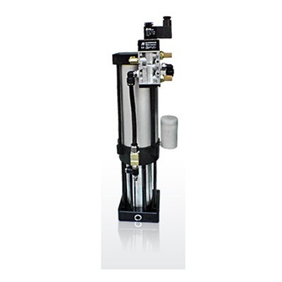 1、預壓式增壓缸:當工作氣壓壓在液壓油表面時,液壓油會因壓縮空氣作用而流向預壓行程腔,此時液壓油會迅速推動軸心作位移,當工作位移遇到的阻力大于氣壓壓力時預壓軸心則停止動作,此時,增壓缸的增壓段因為氣動壓力動作,增壓軸心亦開始作位移動作,并擠壓預壓缸體里的低壓油,使之增壓從而產(chǎn)生強大推力的效果。